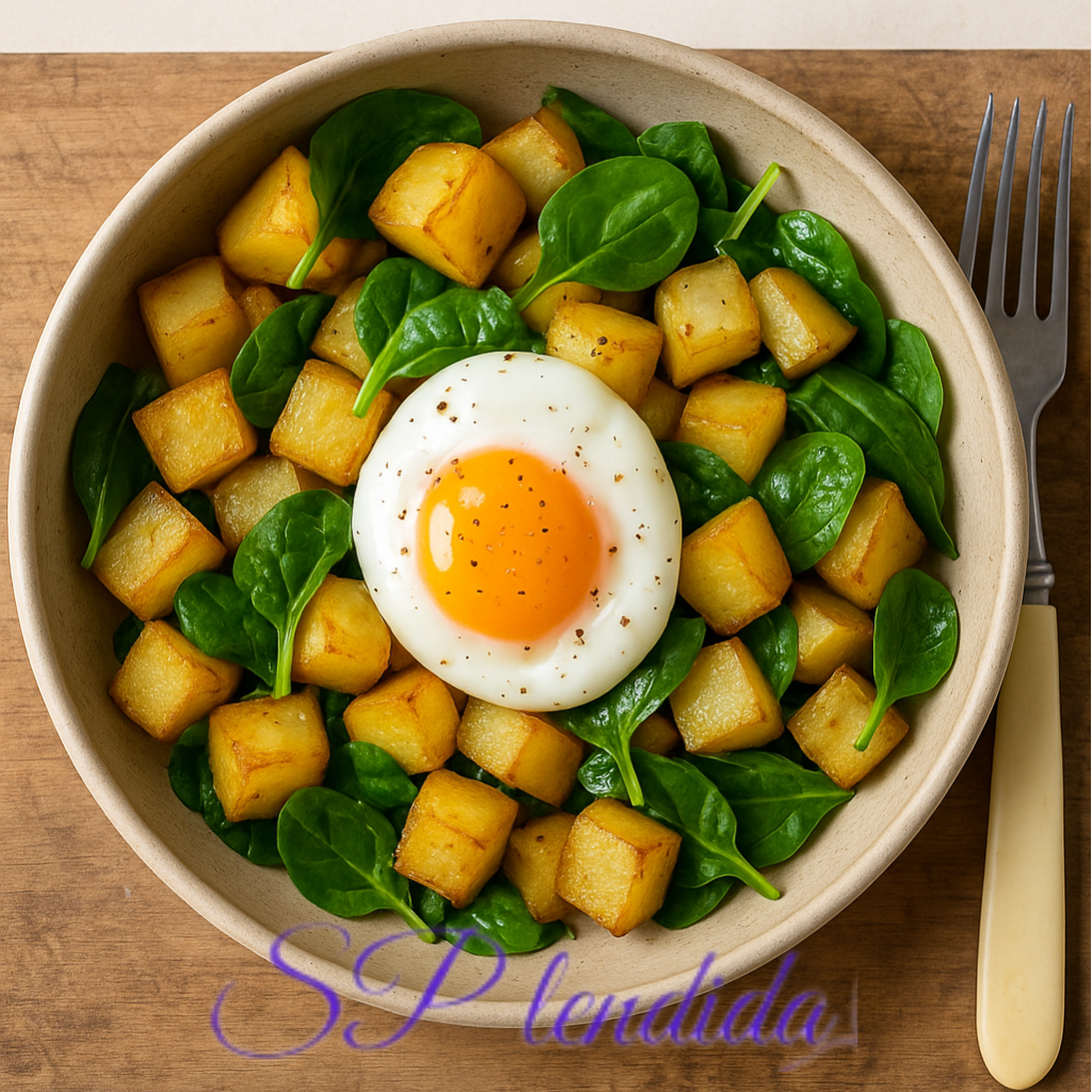 🍳 4. Patate saltate con uovo morbido e spinacini